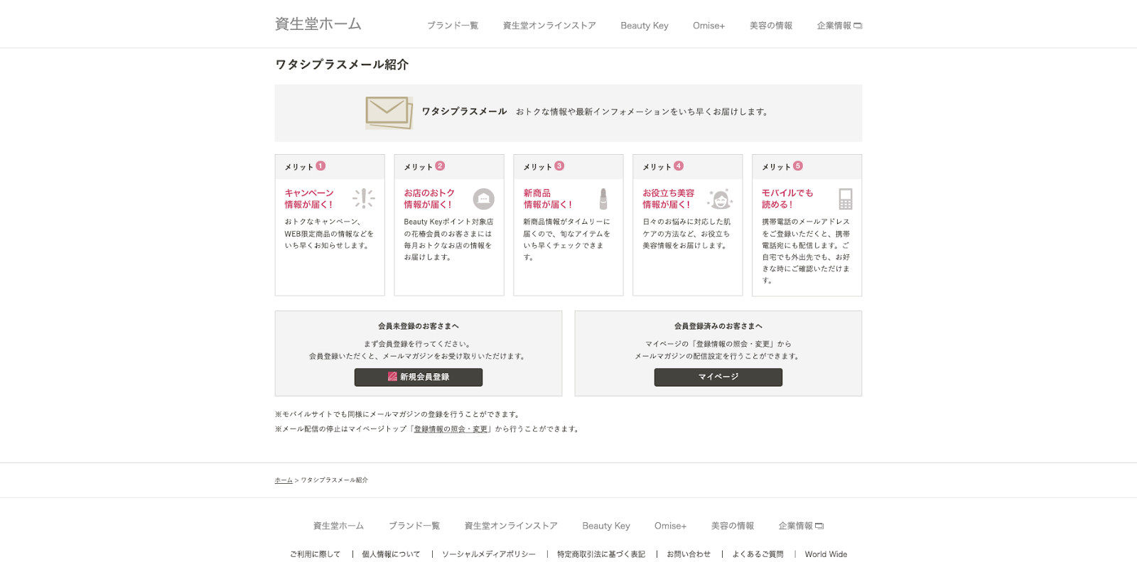 資生堂 (ワタシプラス)のメルマガ登録ページはこちら