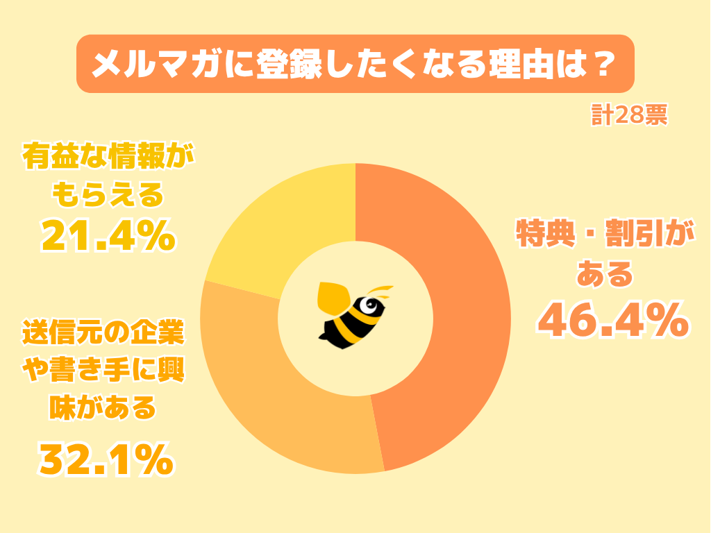 メルマガ登録のきっかけとして、21.4%の人が「自分にとって役に立つ情報が得られること」でした!