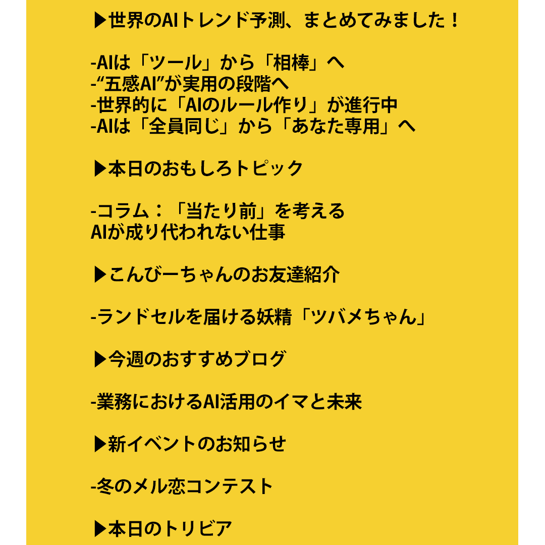 こちらは2026年1月23日に配信した当社メルマガ『こんびーず通信』のバックナンバーです。