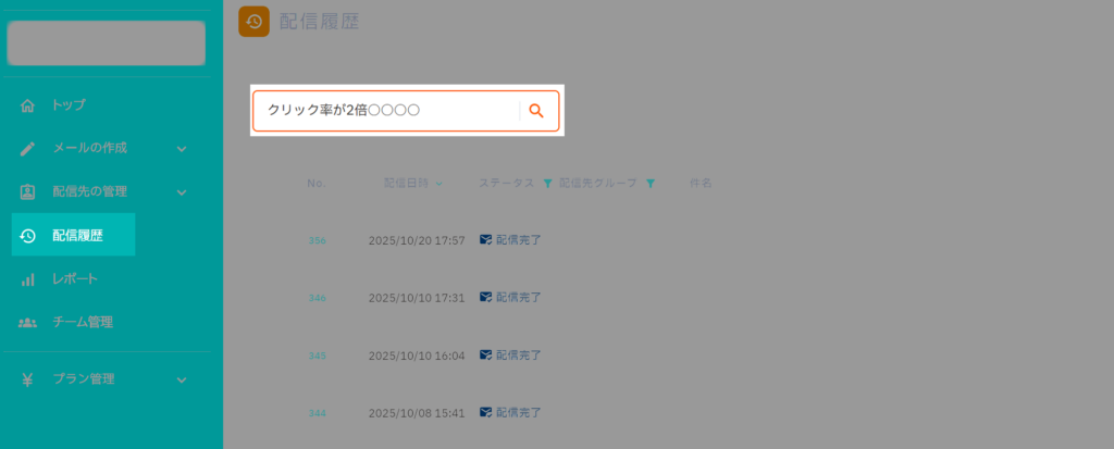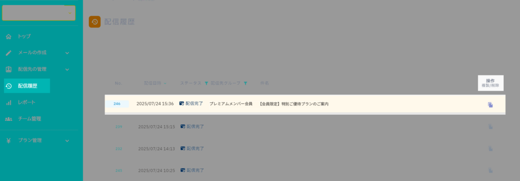 このページでは、配信したメールの履歴一覧の見方と、主な操作方法について説明します。