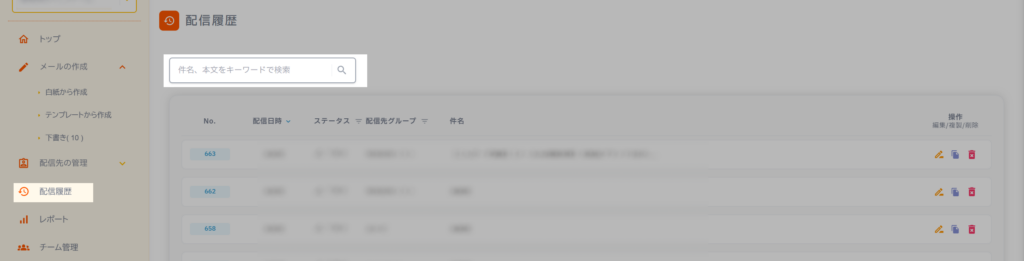 このページでは、配信したメールの履歴一覧の見方と、主な操作方法について説明します。