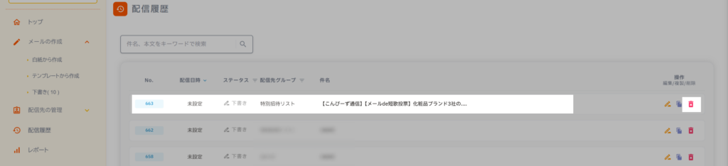 - 「配信完了」 ステータスのメールは削除できません。