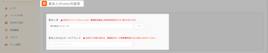 配信中に差出人メールアドレスを変更すると、意図せず上書きされたり、正しく送信されなくなる可能性があります。